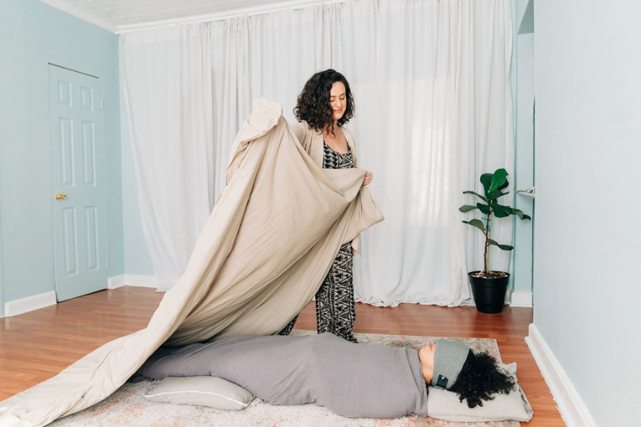My signature Swaddled Shavasana and Yoga Nidra help release tension and promote healing.